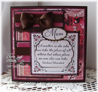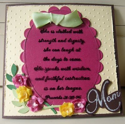 This first card is very feminine. I colored the image from the new Mother's Day set called