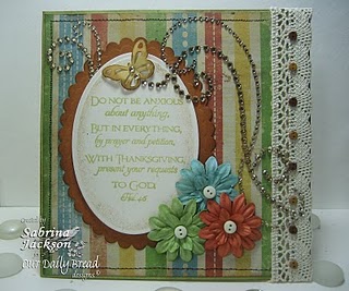 As a way of recognizing those who do use Our Daily Bread Designs stamps, we will again be choosing 1 to 2 creations to spotlight for our Shining the Light Award. In order to qualify for this award, however, you must use Our Daily Bread stamps and have your submission added to Mr. Linky by June 3 at 8 p.m. EST.