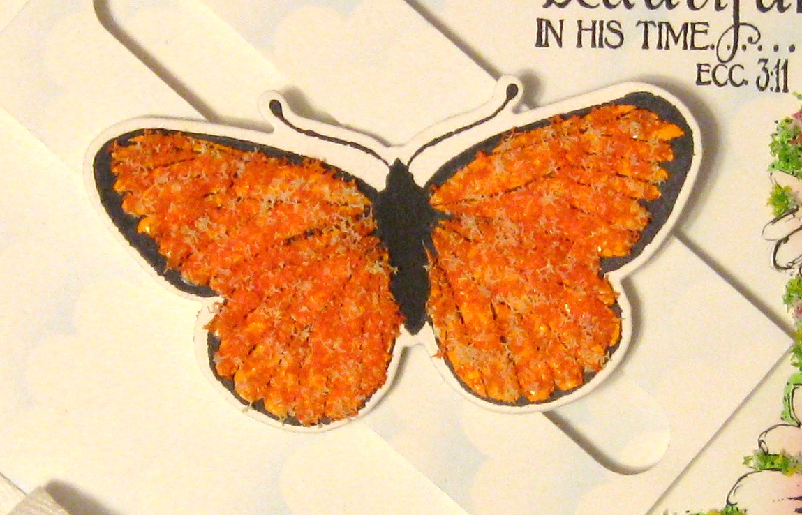 Here is the finished butterfly using Marigold Flower Soft. To make the butterfly spin, just tilt the card from side to side and it will roll from one end of the spinner panel to the next.