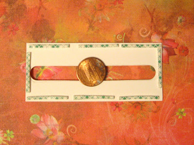 Any stamped item, chipboard, or embellishment to be your "spinner" as long as it will cover a penny.
