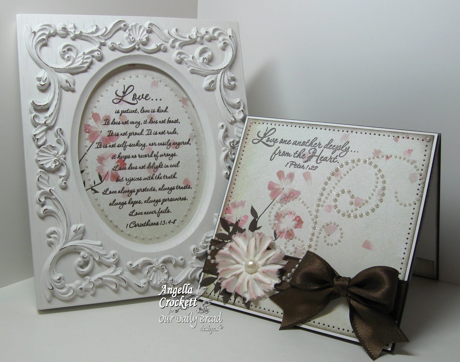 For this week's Flashback, instead of one stamp set, we are focusing on the entire "Love" Bundle, which includes "Love One Another", "Love", and the "1st Corinthians" single. If you are like me, you will grab all three of these when it comes time to create a wedding, anniversary, or any kind of "love" card or gift. These two sets and single stamp go hand in hand together.....perfect to mix and match! Personally, I love this bundle not only for the beautiful scriptures and heart wreath, but the gorgeous font (with the little hearts on the letters!)