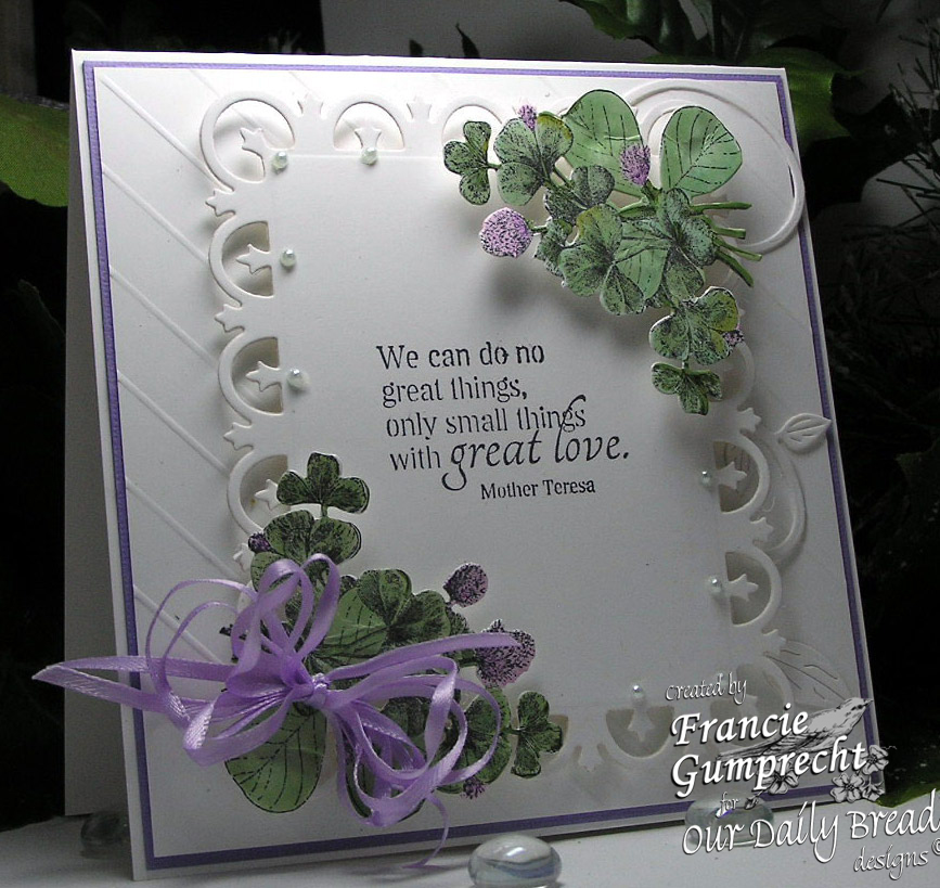 When I’m not stamping, I work as an accountant with a utility company. I first discovered scrapbooking in 2003 and it proved very therapeutic for me. A dear friend suggested stamping in 2009 which I took to like a duck does to water! Stamping has proved to be such a blessing for me and a very powerful outreach. I try to spread God’s love to those who are ill, need cheering up or a hearty hello! I happened upon Our Daily Bread Designs in 2009 and instantly became a fan. I