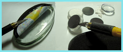 Now my oval is just the right size! I peeled the back off this new sticker image and attached it directly on top of the old sticker I peeled off. I placed this so that it fit inside the glass oval.